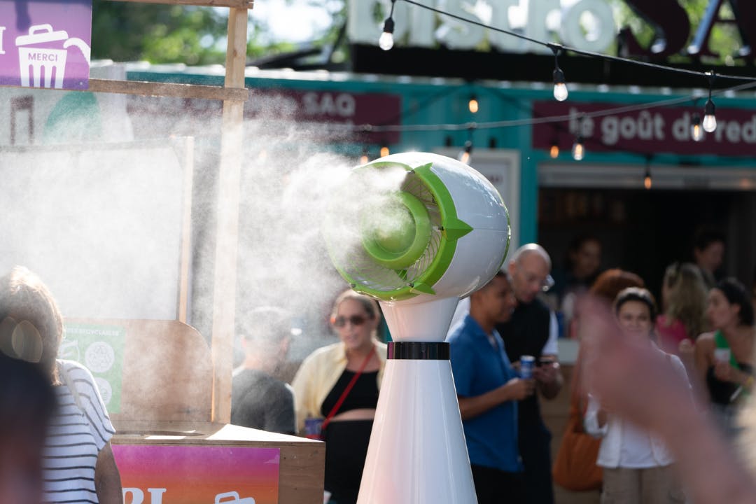 Ce brumisateur sur pied est l'outil parfait pour offrir un souffle d'air frais à tes invité·es. Fonctionnant avec de l'électricité (15A), il est facile à utiliser, mais nécessite que tu remplisses régulièrement son bac d'eau pour maximiser l'effet rafraîchissant. Idéal pour garder tout le monde au frais et dans un mood festif, même pendant les journées les plus chaudes!