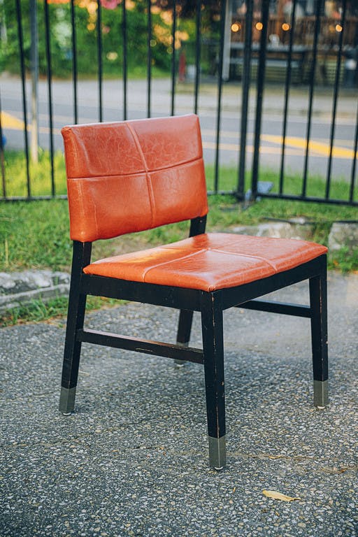 CHAISE BASSE ORANGE EN CUIR